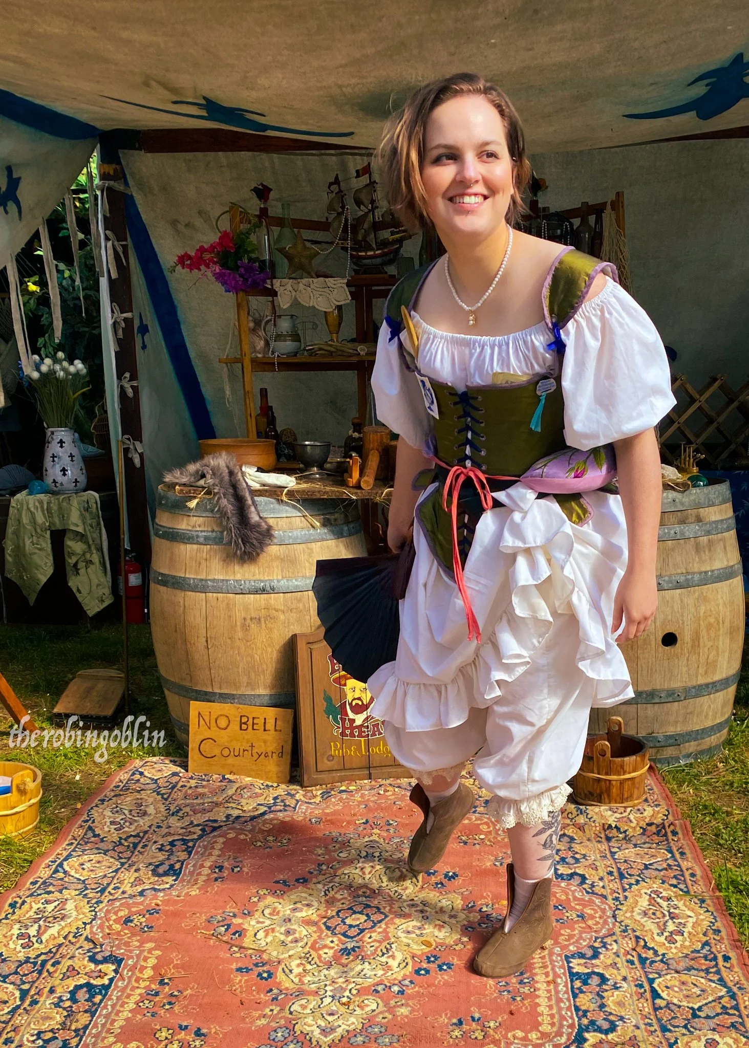 Whilst most of these are not historically accurate to the renaissance in Europe, these are the various uniforms I’ve worn as a performer and merchant!
